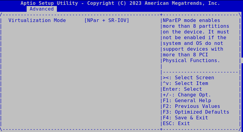 For all rNDC cards, open Device Level Configuration and set rNDC interfaces image widget. It can then be set to SR-IOV or NPar + SR-IOV